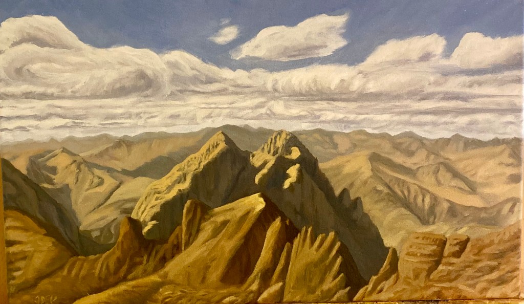 Mountains like little ant hills in the distance, each one a new challenge, a new perspective. The further up you go, the further out you can see.